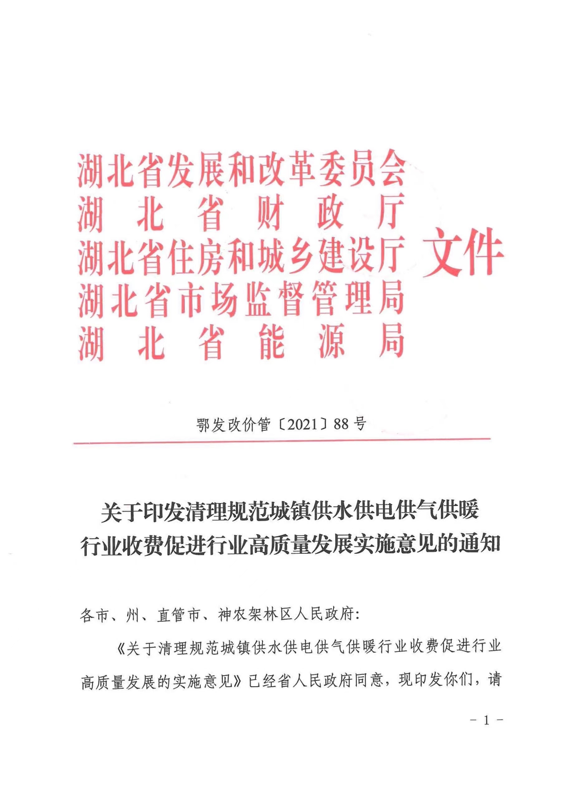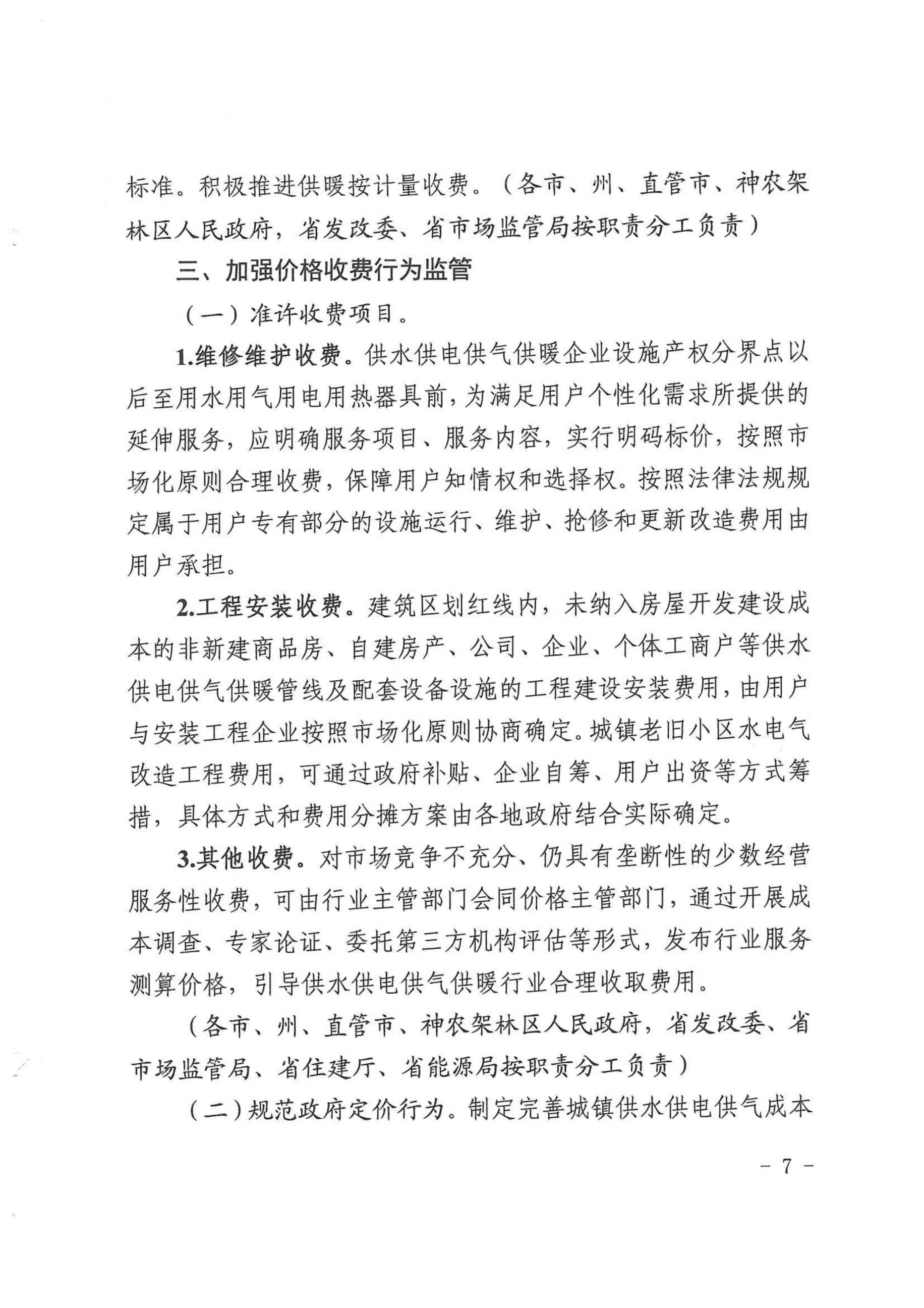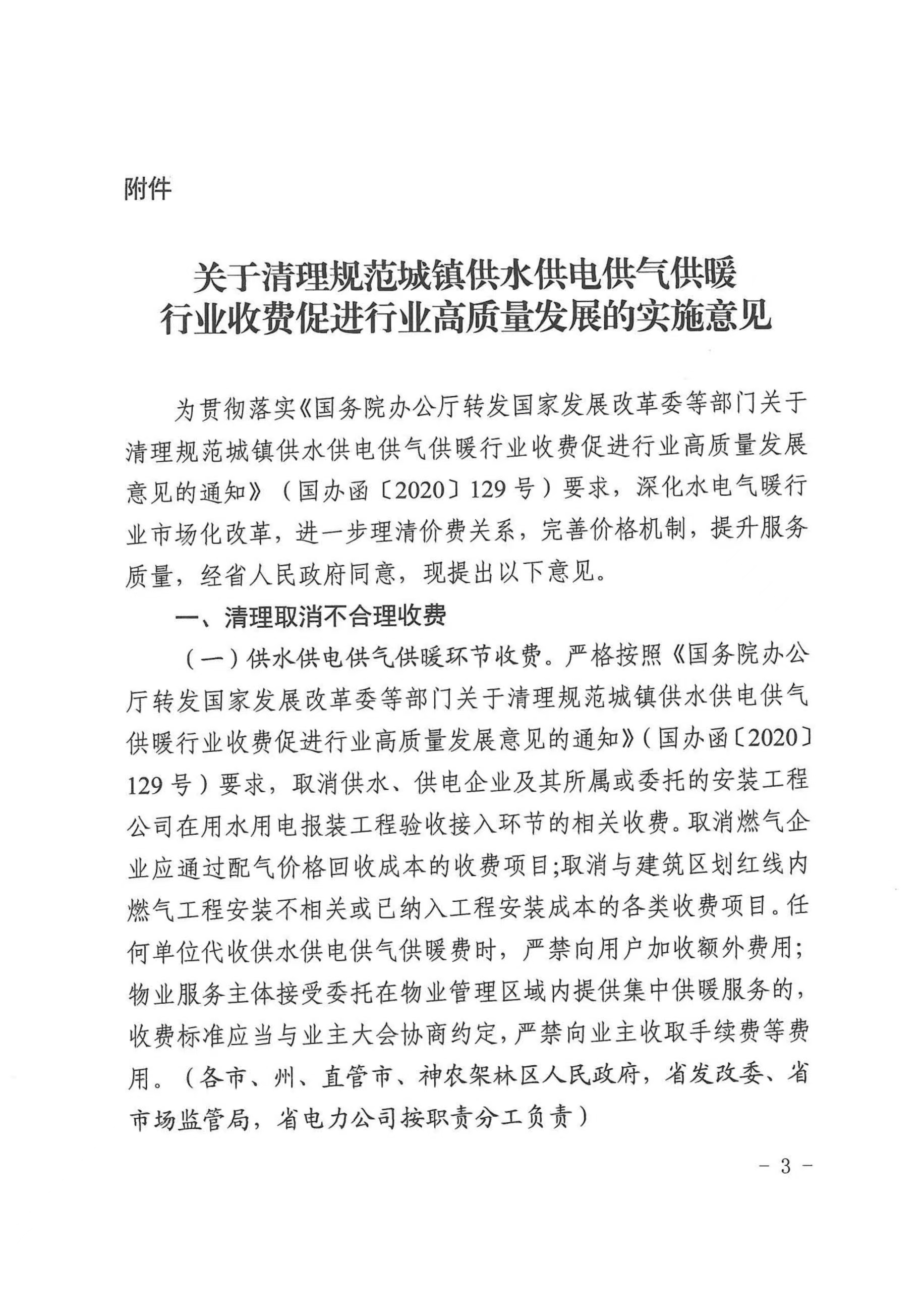 關(guān)于印發(fā)清理規范城鎮供水供電供氣供暖行業(yè)收費促進(jìn)行業(yè)高質(zhì)量發(fā)展實(shí)施意見(jiàn)的通知